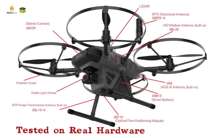 Ausgestattet mit fortschrittlichen Technologien wie einem RTK-Richtantenne, A UWB-Positionierungsmodul, Und LiDAR, Die XD450 Angebote zentimetergenaue Positionierung in beiden Innen- und Außenumgebungen. Dies macht es zu einem perfekten Benchmark für das Testen von Algorithmen im Zusammenhang mit Zusammenarbeit mehrerer Drohnen, Trajektorienverfolgung, Und autonome Steuerung. Darüber hinaus umfasst seine multimodale Wahrnehmungssuite unter anderem eine Fernglaskamera, Sichtbares Lichtmodul, Und Computer Vision Fähigkeiten, ermöglicht komplexe Forschungsanwendungen wie ZUSCHLAGEN, Zielerkennung, Und 3D-Rekonstruktion.