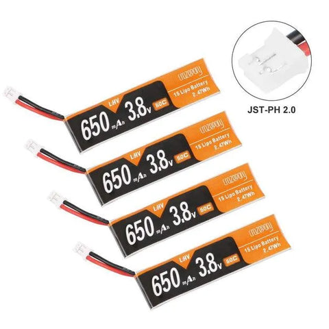 Je recommande des batteries 1S 450mah/550mah/650mah (Non inclus)