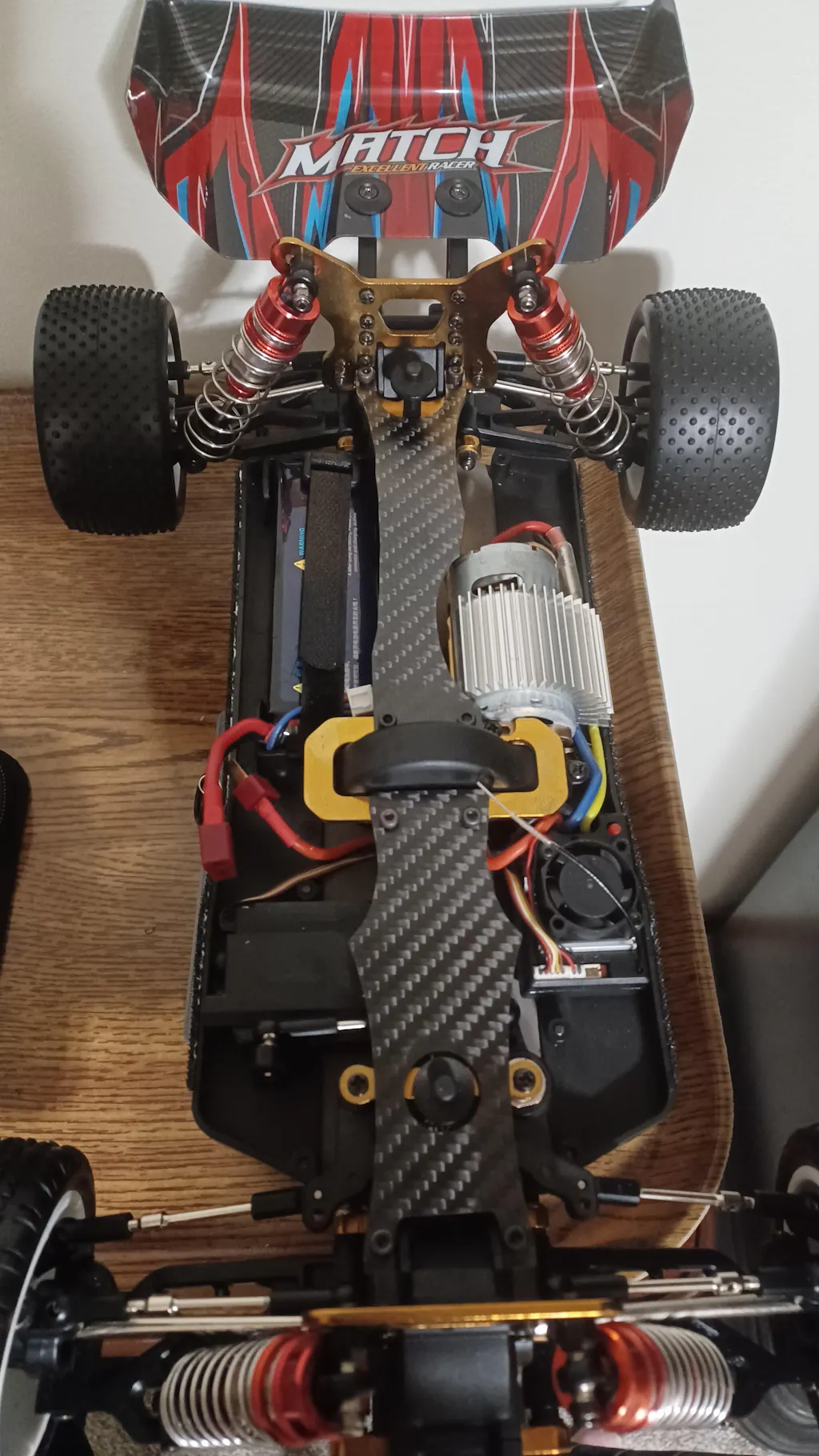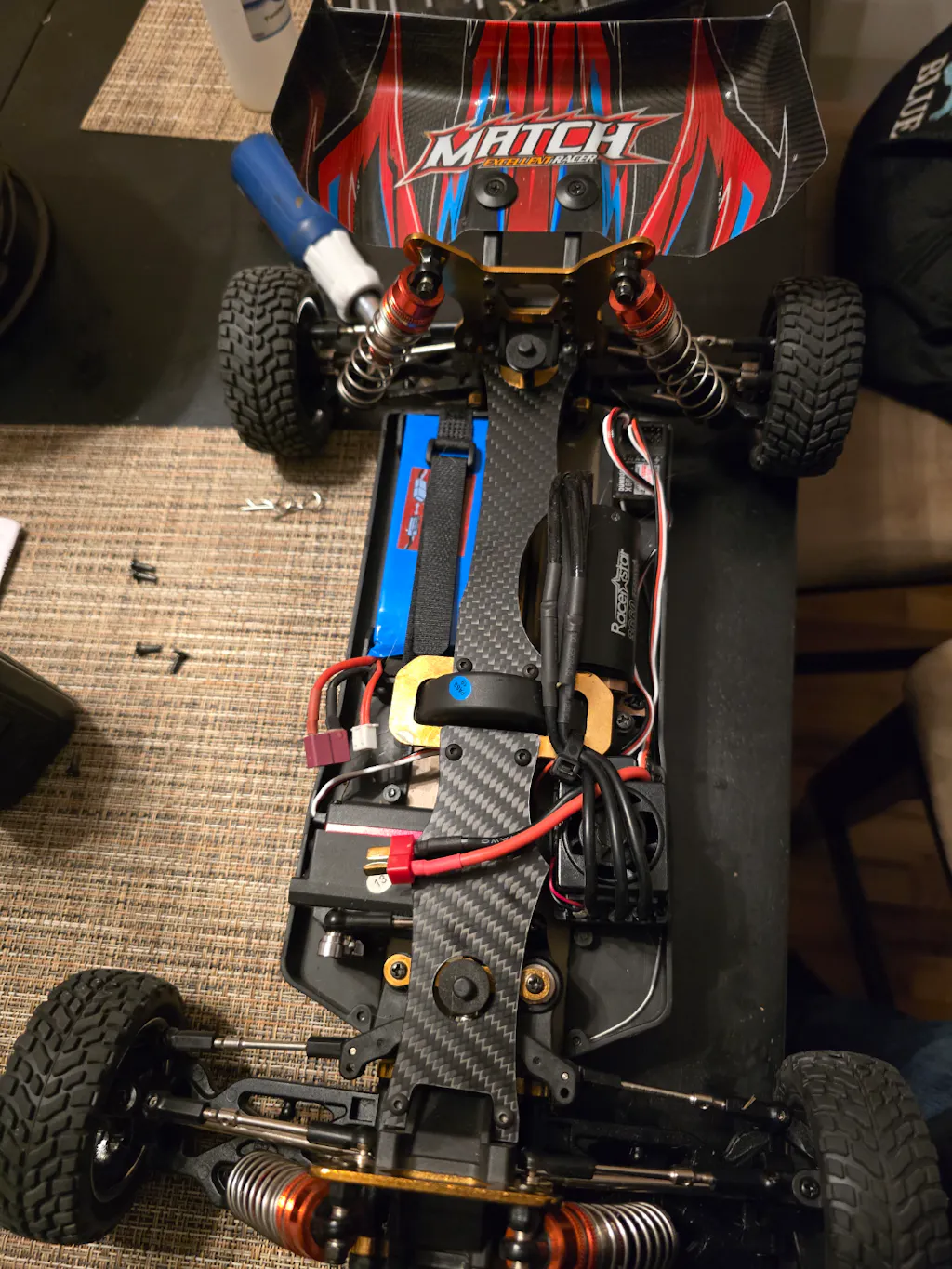 These braces really stiffen the car nicely. You can feel the difference when you pick it up by the front end. You will have to get longer screws to put it on as the ones in the car just aren't long enough. Also the screws included for the front holes are plastic. Other than that this is perfect. r/104001